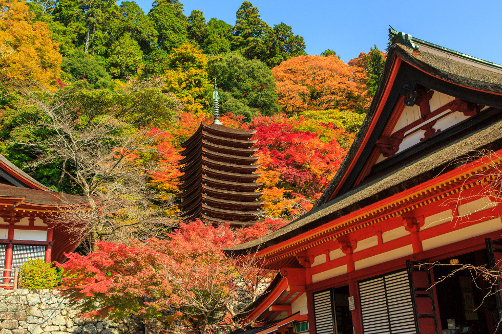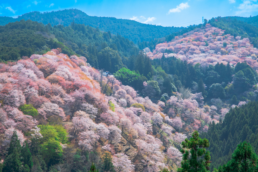 桜の名所で知られている吉野山は、下千本から奥千本まで吉野山全部が桜色に染まり、朝もや、桜のライトアップなど時間により様々な景色をご覧いただけます。また、春は桜、夏は紫陽花、秋は紅葉と様々など四季折々に楽しむことができます。