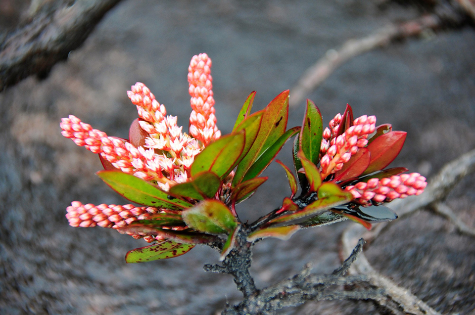 オヒア・レフアはハワイ固有の花木で、火山地帯にたくましく根付き、真っ赤な花を咲かせます。火山活動後の森の再生に重要で、ハワイ神話にも登場する神聖な存在。6月~10月頃にハワイ火山国立公園などで観賞でき、その美しさと力強さが旅人を魅了します。