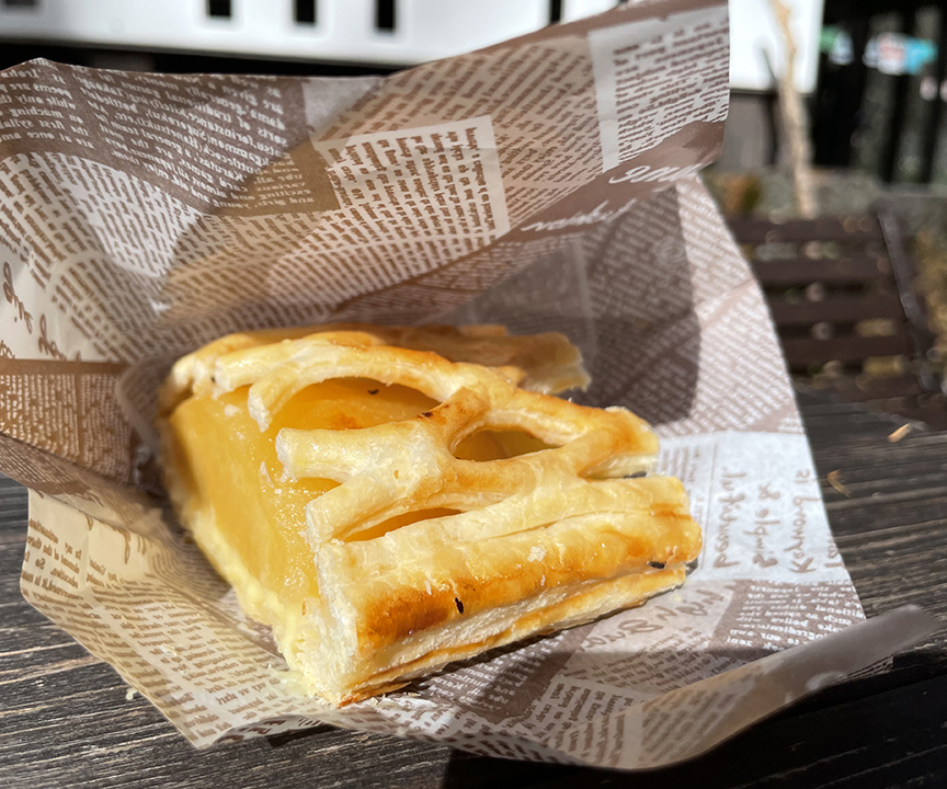 河童橋周辺にはカフェやお食事処が多く、食事や軽食に、信州名物のりんごを使ったアップルパイなど、美味しいものがたくさん。暖かい秋の気候の中、テラス席でカフェを楽しむのもおすすめです。