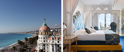 壮大なベルエポック建築が目を惹くネグレスコは、ニースを代表するラグジュアリーホテルです。アンティーク家具やアート作品の豪華なコレクションを誇り、さながら美術館のようなホテルと言っても過言ではありません。
