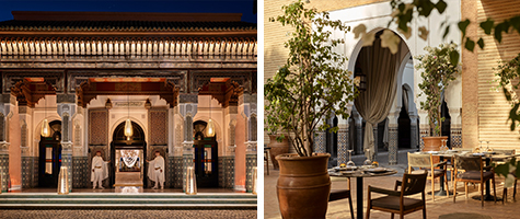 エントランスの装飾、凛としたドアマンを目にするだけでも心高ぶる、100年の歴史を誇るマラケシュの名門ホテル。その高貴な佇まいから「マラケシュの貴婦人」と称されています。