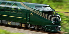 由布院~博多間…「或る列車」:水戸岡鋭治氏デザインにより、100年の時を超え蘇る幻の豪華列車。ラグジュアリーな車内でコース料理をご賞味。