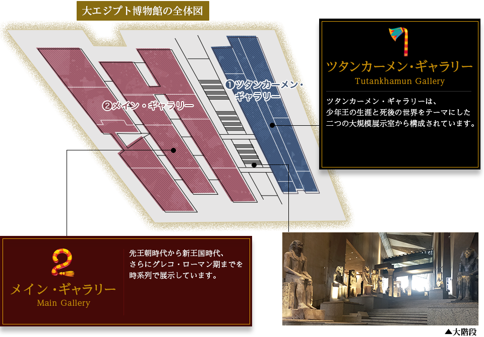 クラブツーリズムの大エジプト博物館ツアー・旅行特集!12室に及ぶメインギャラリー、ツタンカーメン王の至宝が展示されているツタンカーメン・ギャラリーを擁し、古代エジプトの約5,000年にわたる歴史を体感できる大エジプト博物館をたっぷりご紹介します!大エジプト博物館へ行くエジプトツアーもご案内。ツアーの検索・ご予約も簡単!