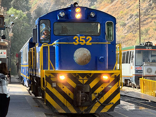 車窓からは、朝の光に照らされるアンデスの山並みとウルバンバ川沿いの渓谷美をご覧いただけます。
