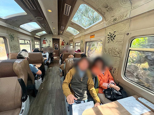 天井に窓のある開放的な列車なので移動中も景色をお楽しみいただけます。