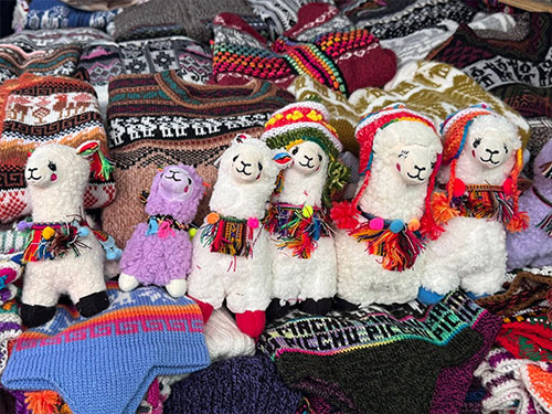 ・お土産店・・・カラフルな布で作られた雑貨、アルパカ製品(手袋やストールなど)、アルパカやリャマのぬいぐるみなど、ペルーならではのお土産がきっと見つかるはず!