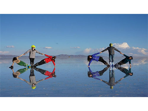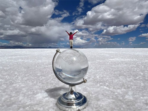 ウユニ塩湖ならではの絶景を楽しみましょう。そしてトリック写真もウユニ塩湖の楽しみの一つです。