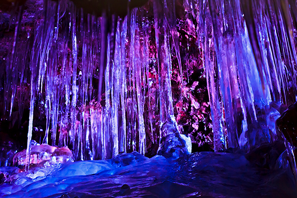 鳴沢氷穴は青木ヶ原樹海の東の入口に位置し、富士五湖観光のひとつに数えられています。樹海の入口にぽっかり空いた洞窟は「天然の冷蔵庫」とも呼ばれており、氷柱が幻想的に輝きます。涼しい洞窟内で氷の絶景を楽しむことができる避暑地スポットです。