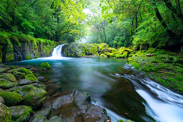 くまもと自然休養林で天然クーラーとも称され、初夏には新緑、夏は避暑地として、渓谷沿いの遊歩道を歩けば、川のせせらぎと小鳥のさえずりに癒され、人々の心を和ませてくれます。