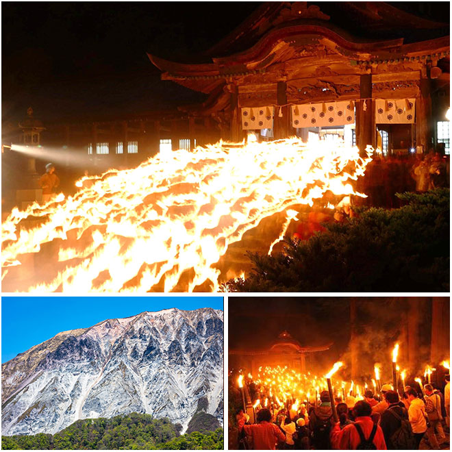 右下:たいまつを持って安全祈願しましょう!(イメージ)