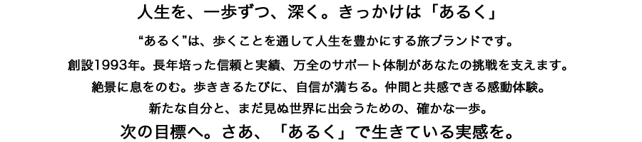 クラブツーリズムの「あるく」ツアーが、はじめての方へのご案内。ウォーキング、ハイキング、登山など、初心者からベテランまで、個々に合わせた多彩なラインナップで安心・安全な旅をご用意。ツアーの検索・ご予約も簡単です。