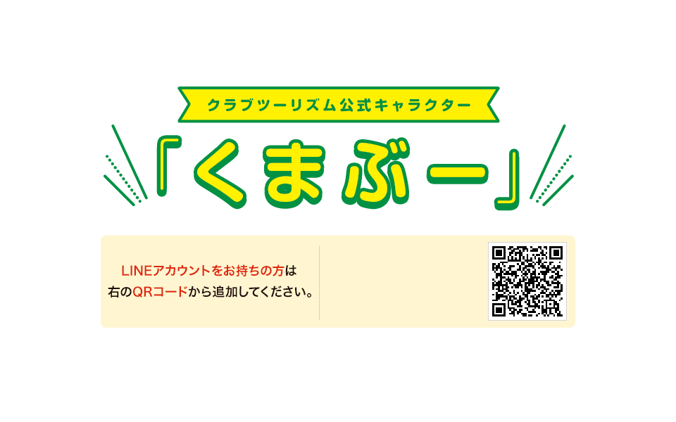上部の二次元バーコード等から、クラブツーリズム公式LINEを友だち追加ください。 |
