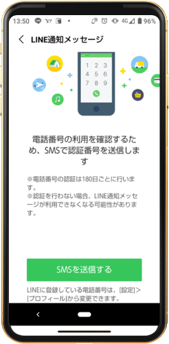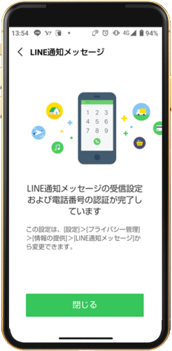 - 当該LINEアカウントが、LINEアプリの設定で「LINE通知メッセージ」の受信を許可している