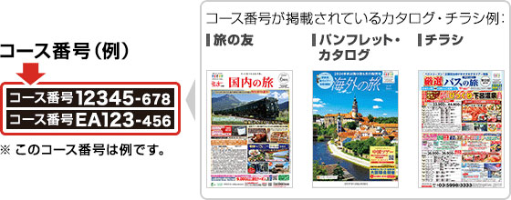コース番号は、「旅の友」、「パンフレット・カタログ」、「チラシ」に掲載されている