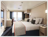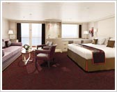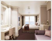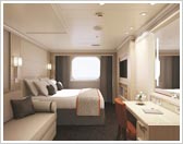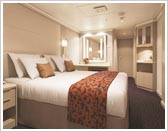 藤色、柿色、淡い黄緑色という今までになかった落ち着いた色彩をアクセントに使い、客室全体をモダンで洗練された空間に仕上げました。新しいホーランドアメリカを感じさせる配色です。