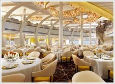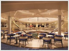 間接照明をふんだんに使った柔らかな空間、メリハリをきかせ視覚的効果をねらった印象的な船内、楽器からヒントを受けた流動性のある曲線が美しい内装はホーランドアメリカラインの新しい船出を感動的に演出してくれます。