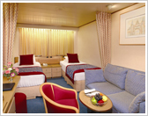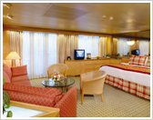 数あるプレミアム客船のなかでも、あえて収容乗客数を少なくするよう設計された船です。お客様お一人おひとりの占有スペースの確保、広々とした客室、なんといっても乗下船やお食事などが円滑にでき、快適にお過ごしいただけるのが特徴です。