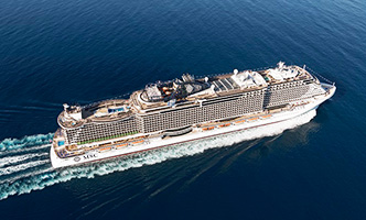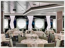 MSCシービューのメインレストランでは、食欲をそそる新鮮な地中海料理や多国籍料理をエレガントな雰囲気の中お召し上がり頂けます。(別料金)