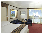 ウィンドー・ステートルーム/丸窓(約18.6m²)、ウィンドー・ステートルーム/角窓(約18.6m²)、バルコニー・ステートルーム(約22.2m²+約3.4m²)、ベランダ・ステートルーム(約28.1~28.3m²+約4.4~5.2m²)、ベランダ・スイート(約32.4~33.3m²+約4.9~5.4m²)、グランド・スイート(約49.1m²+約18.3m²)など