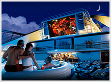 ハイテク技術を用いられたシアターや、ガラス張りの通路「シーウォーク」、音楽にあわせ10mの高さまで噴水が上がる「ウォーターカラーファンタジーショー」など乗船中も楽しい演出がいっぱいです。
