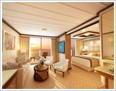 プリンセス・クルーズ史上最大となる14万トンクラス。全客室の80%を占める海側客室は、全室がバルコニー付きです。海上から40メートルの高さに設置されたガラス張りの回廊「シー・ウォーク」と「シー・ビュー・バー」の他、噴水ショーを彩る「ファウンテン・プール」、洋上初のテレビスタジオ「プリンセス・ライブ」など驚きの新施設が目白押しです。