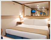 おすすめは海側バルコニー付の客室です。ご自身の客室内のプライベートバルコニーから、出入港シーンをご覧頂くのもクルーズツアーの醍醐味です。ほかにも内側客室やスイート客室など、様々な客室タイプがありますので、旅のスタイルに最もふさわしい客室をお選びください。