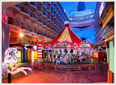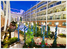 2009年に就航した世界最大級客船。緑あふれるセントラルパーク、遊園地をモチーフにしたボードウォークなど、洋上にいるとは思えないような施設が充実です。ショーが繰り広げられており、アイススケートショーや水中ショーは必見です。