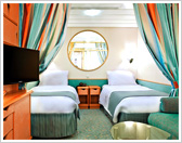 内側客室【約13.9㎡/シャワー付き】、海側客室【約14.8/シャワー付き】、海側バルコニー客室【約15.2+4.7㎡/シャワー・バルコニー付き】、ジュニアスイート客室【約24.5+6.9㎡/バスタブ・バルコニー付き】