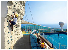 動く街並みの元祖ともいえる13万トン級客船。2014年に改装をしたことで、新たなレストランの創設や、船上サーフィンが登場しました。シニアからお子様まで、あらゆる年代のお客様でも楽しめるように工夫がされている、人気の客船です。