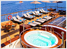 本クルーズの寄港先は、少人数のお客様だけをお迎えしてくれる世界屈指のリゾートや大型客船の立ち寄る聞きなれた寄港地とは違う、とっておきの航路となっています。小型船でのサービスにポリシーを持っており、乗務員と乗客の割合がほぼ1対1に近く、豪華シップでありながら、リラックスした船旅を演出します。客室は全72室、高品質なサービスのため限られた人数での運航をしています。