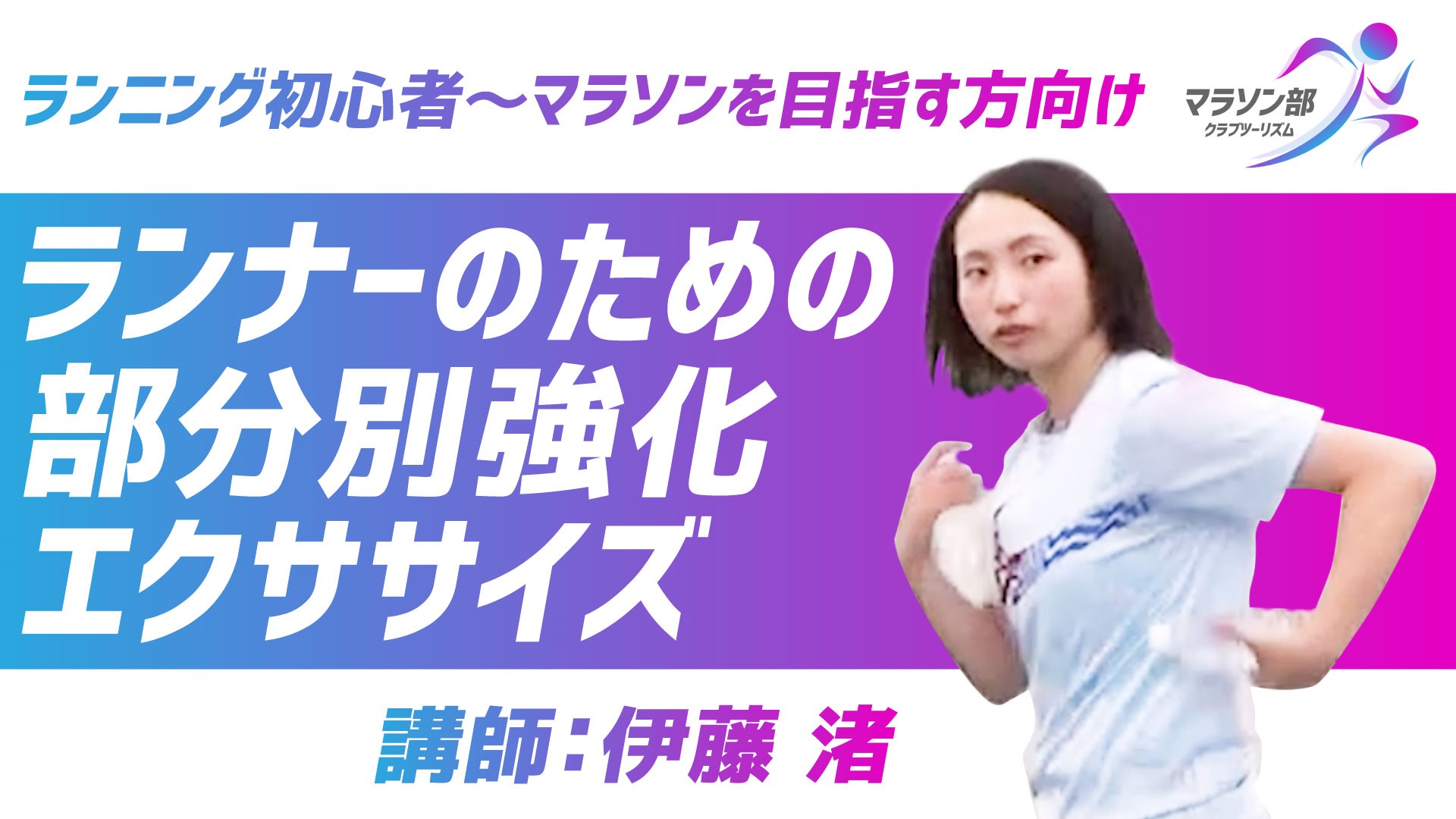 コンディショニングトレーナー伊藤渚コーチに学ぶ、ランナーのための部分別強化エクササイズです!下半身編は初級編と上級編をご用意しました!動画を見ながらチャレンジしてみてください!