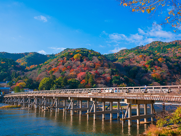 古くから行楽地として知られたエリア。桜の時季も紅葉の時季も美しい。桂川に架かる渡月橋や数多くの古刹が京らしい風情を醸し出す嵯峨野で散策を。