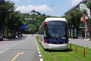城郭の形式は、梯郭式平山城。大小天守閣をはじめ、櫓(やぐら)49、櫓門18、城門29を数え、城郭の広さは約98ha(東京ドーム21個分)、周囲約5.3kmにも及ぶ豪壮雄大な構えで、清正流石垣と呼ばれる優美な石垣と、自然の地形を巧みに利用した高度な築城技術で知られています。石垣は、始め緩やかな勾配のものが上部に行くにしたがって垂直に近くなる「武者返し」と呼ばれる形状の石垣を多用しています。