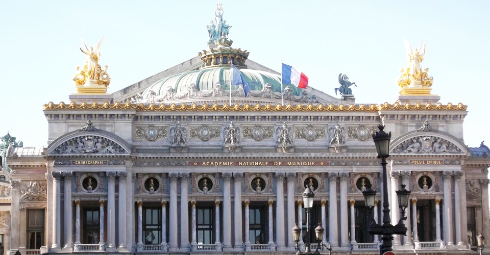 パリを代表する観光名所のひとつで、正式名称は「ガルニエ宮」といいます。小説や映画、ミュージカルで有名な「オペラ座の怪人」の舞台としても知られています。建てられたのはナポレオン3世が街の近代化に取り組んでいた時代で、当時無名に近かったシャルル・ガルニエの設計案がその象徴ともいえる建築に採用されました。当時のあらゆる美術や技術を駆使した総合芸術といえる劇場は、着工から13年後の1875年にオープンしました。