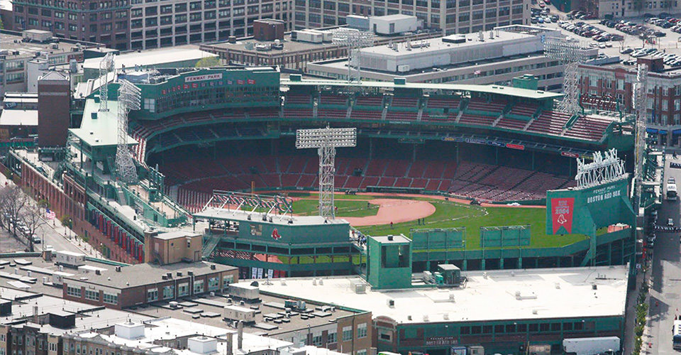 フェンウェイ・パークは、かつて野茂英雄選手や松坂大輔選手も所属していたメジャーリーグの名門、ボストン・レッドソックスの本拠地球場です。開場したのは、100年以上も前の1912年のこと。現在メジャーリーグで使用されている球場の中では、最も古い球場となります。高さ37フィートにもなる外野フェンスは「グリーン・モンスター」と呼ばれ、フェンウェイ・パークの名物となっています。