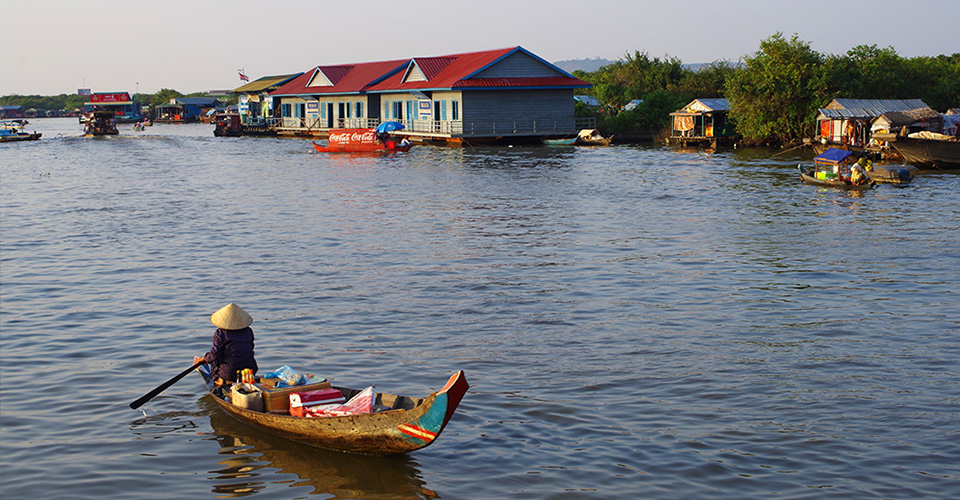 カンボジアの国語であるクメール語で「トンレ(川)」「巨大な淡水湖(サップ)」。名前そのものに「湖」という意味が込められていることからもわかるとおり、カンボジアの国土のなかでも絶大な存在感を持つ湖が、このトンレサップ湖です。水深は乾季には1m、雨季には9mと浅いものの、古くから漁業が盛ん。メコンオオナマズのような巨大魚から淡水のフグといった多彩な魚は、今も昔もカンボジアの人々にとって重要な水産資源です。