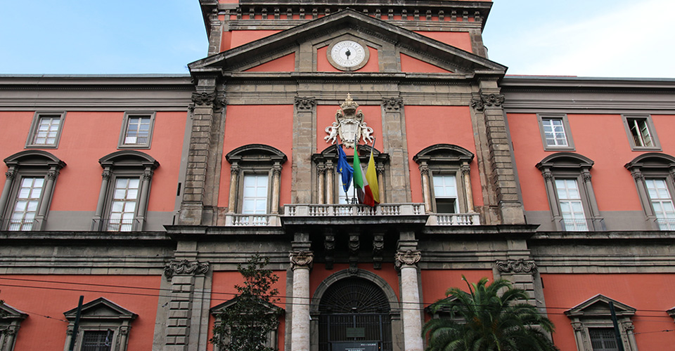 「パラッツォ・レアーレ・ディ・ナポリ」はプレビシート広場に面して建つ、ブルボン家の王宮です。元々は17世紀の初めに当時のスペイン王のために建てられましたが、実際に使われたのは18世紀にブルボン家出身のカルロ7世になってからといいます。建物の西ファサードには歴代の王の像が展示され、王宮内部は王家の繁栄の歴史が伺い知れる豪華な調度品の数々や絵画で彩られています。