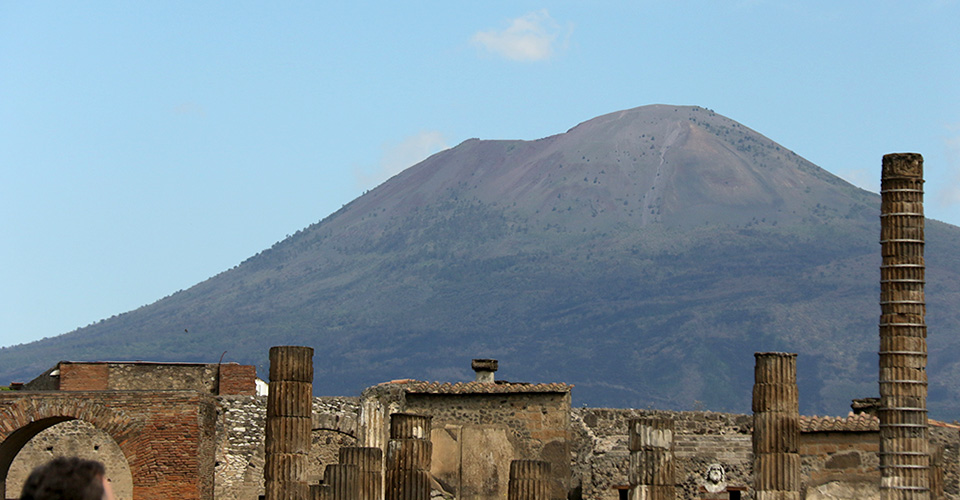 ナポリのシンボルともいわれるヴェスヴィオ山は2つの峰からなり、火口を持つヴェスヴィオ山とそれを取り巻くソンマ山で構成されています。ヨーロッパ各国からの旅行者が気軽に登山できる山としても知られ、晴れた日の山頂からは眼下にナポリの街並みとナポリ湾に浮かぶカプリ島の絶景が広がります。さらにヴェスヴィオ山に来たら、ポンペイ遺跡は外せません。中でも保存状態が良好な壁画は、当時を知る貴重な資料となっています。