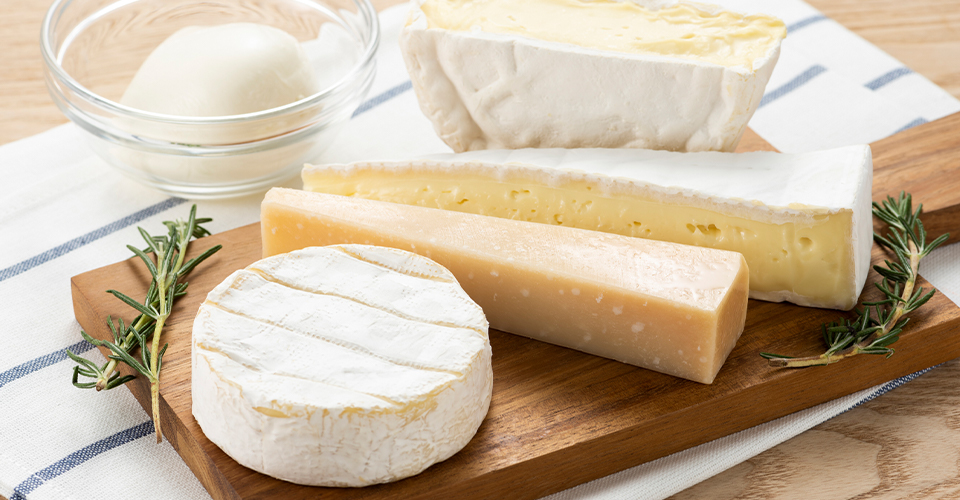 ワインの国・フランスの食卓に欠かせないチーズ。現地では「ナチュラルチーズ」が一般的です。一度加熱している「プロセスチーズ」とは違い、菌が生きているため、日が経つにつれて熟成が進み、味や香りの変化を楽しめます。ナチュラルチーズにはフレッシュ・白カビ・青カビ・ハード・セミハード・シェーブルなどのタイプがあり、それぞれ味や香りが異なるため、食べ比べを楽しめます。フランスから持ち帰る際は、バターと同様に保冷バックに冷凍食材などと一緒に入れると安心です。