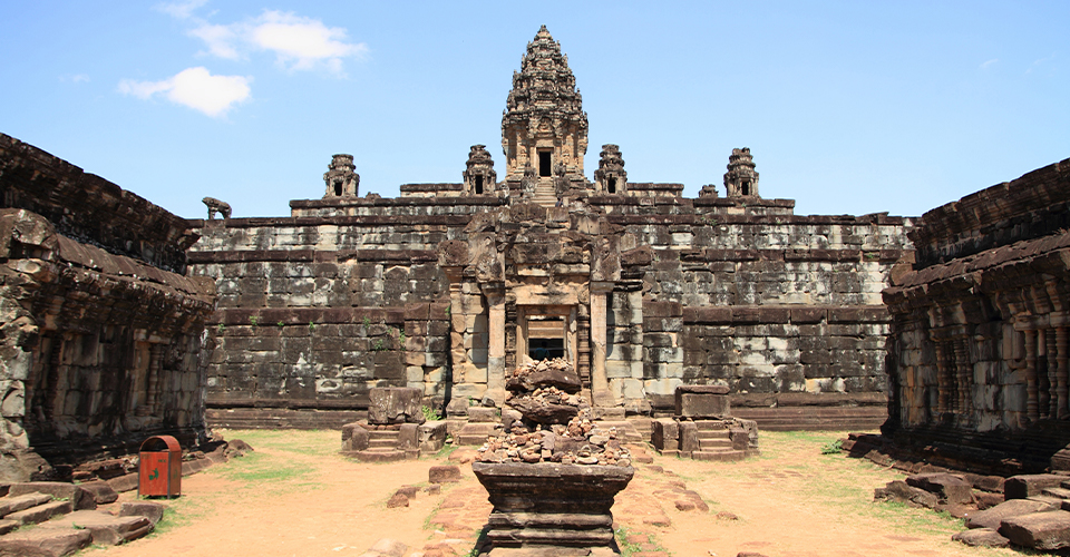 「ロリュオス遺跡群」は、「アンコール・ワット」よりも前の時代に開かれた都の一帯に残る、レンガ造りの寺院群。シェムリアップ市街地から車で25分の場所にあります。アンコール王朝最古の寺院「プリア・コー」、アンコール・ワットの元となった山岳型寺院の「バコン」、かつては貯水池の中央に位置し、治水をした「ロレイ」の3つの寺院を見学できます。狛犬の役割を持つ獅子「シンハー」や、神話の神「ナーガ」「聖牛ナンディン」の石像が各所にあり、豊かな自然の中、歴史ロマンに浸れます。観光の所要時間は1時間半~2時間です。
