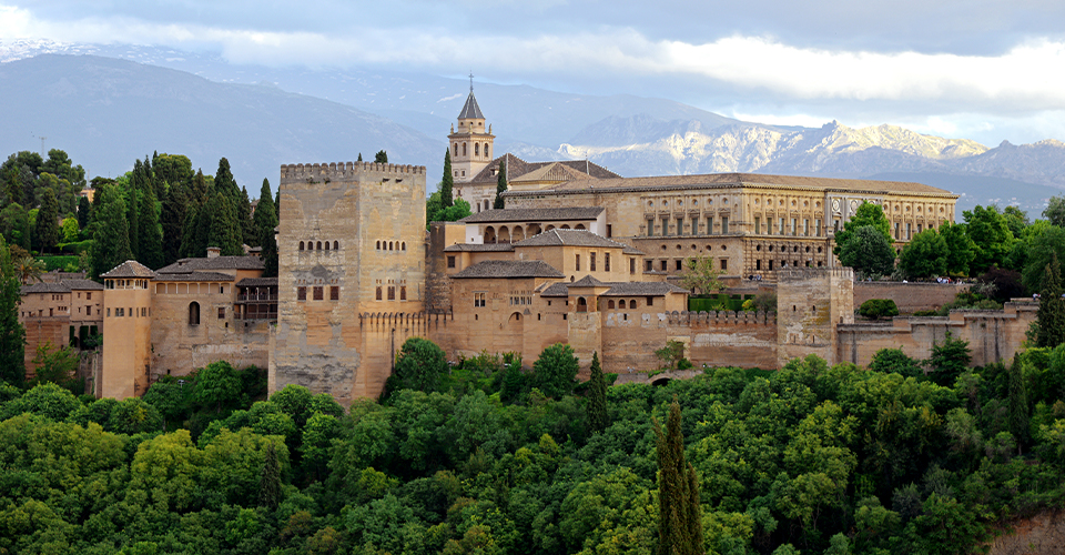 スペイン南部に位置する古都・グラナダにある宮殿。1238年~1492年まで続いたイスラム政権・ナスル朝時代に王宮として利用されていました。イスラム建築の最高峰と言われ、世界遺産に登録されています。広い敷地の中で最も有名なのは「ライオンの中庭」。12頭のライオンに支えられた噴水を124本の大理石の柱が取り囲む、静かな空間。回廊から庭を眺めると、まるで森の木立の中にいるような感覚を味わえます。1日の入場人数が制限されているため、入場チケットは事前予約が必須。全部で6種類あり、日中にすべてのエリアに入場できる一般入場チケットがあります。