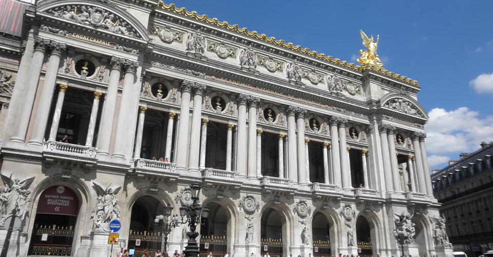 小説や映画「オペラ座の怪人」の舞台にもなった「オペラ座」ですが、正式名は「ガルニエ宮(Palais Garnier)」で、パリ中心部のオペラ通りにあります。1875年に建造されたネオバロック様式の建物で、天井画はシャガールが手掛けています。小規模のオペラやバレエ、管弦楽コンサート等が行われているほか、公演がない日は宮殿のような内部を見学できます。1989年には少し離れたバスティーユ広場に「オペラ・バスティーユ(Opera Bastille)」が建てられ、より大規模な現代オペラを中心に、「くるみ割り人形」等のバレエが上演されています。