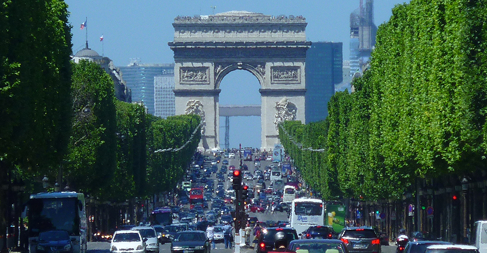 「シャンゼリゼ通り」はコンコルド広場から凱旋門をつなぐ、長さ2kmの道路です。凱旋門付近はグッチやルイ・ヴィトン等のブランドショップが建ち並び、日本未入荷のアイテムも購入できます。地下鉄のフランクラン・デ・ルーズヴェルト駅を通り過ぎると博物館「グラン・パレ」や史跡があり、緑に囲まれてゆっくりと過ごせます。通りに面したカフェ「ラデュレ」はマカロンやフレンチトースト等の軽食やお菓子をいただけます。毎年冬季にはイルミネーションが開催されるほか、12月31日は歩行者天国となり、多くの人で賑わいます。