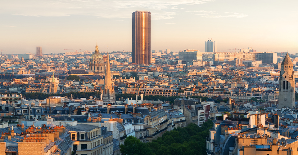 パリの南西部にある「モンパルナス・タワー」は、高さ210m、59階建ての高層ビルです。最上階と屋上は展望台になっており、直行エレベーターで約40秒。屋内外からパリの街並みを一望できます。夜にはライトアップされたエッフェル塔、凱旋門や、大通りの明かりを楽しめます。夕日が沈む時間帯に、徐々に明かりが灯る様子を眺めるのもおすすめ。56階にはレストランやカフェがあり、景色を眺めながら食事ができます。