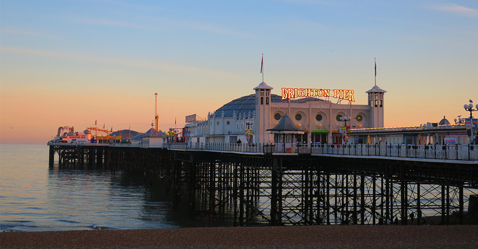 ロンドンから電車で1時間の場所にある海辺の街ブライトン。イギリスで唯一のビーチがある街として知られ、若者が集うファッショナブルなエリアです。遊園地や屋台が設置された桟橋「ブライトンピア」は家族連れで賑わう観光名所。夜のライトアップも綺麗でおすすめです。かつて王族の別荘だった「ロイヤルパビリオン」は、インドやイスラム、中国の建築様式を取り入れたエキゾチックな外観。こちらも夜間はプロジェクションマッピングが行われています。ランチには「ハリーラムズデン」のフィッシュ&チップスがおすすめ。テイクアウトもできるので、海辺で潮風を感じながらいただけますよ。