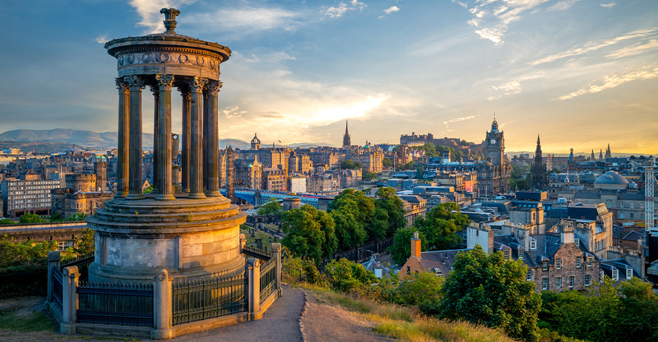 イギリスの北部スコットランドの首都エディンバラ。ハリー・ポッターが生まれた街として知られ、街中は映画の世界と見まがう風景があふれています。岩山の上にそびえる「エディンバラ城」の威風堂々としたさまは、まさに城塞。お城からはエディンバラ全体を見渡すことができます。そこからホリールードハウス宮殿へと向かう石畳の一本道が「ロイヤルマイル」。歴史的建造物や銅像があちこちにあり、歩いているだけで楽しくなります。その西側の「グラスマーケット」は、カラフルな建物が並ぶ撮影スポット。カフェやバーも豊富で、一休みに最適です。
