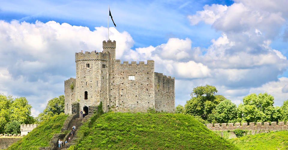 ロンドンより電車に乗って約2時間で着くウェールズの首都。観光名所「カーディフ城」では、「アラブの間」が見どころ。金箔をふんだんに使った豪奢な内装からは、19世紀の石炭貿易による同地の繁栄ぶりが伺えます。城壁の上は歩くことができ、カーディフの素敵な市街地を見渡せます。市中心部よりバスで30分の「コッホ城」は、赤い砂岩でできた可愛いお城。青空に映えるさまは、まるでおとぎ話の一場面のよう。ティータイムにはショートブレッドとスコーンの中間のような食感のウェールズ名物「ウェルシュケーキ」がおすすめです。
