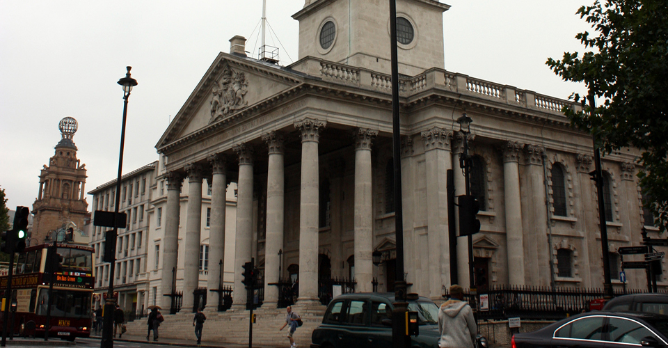 ロンドン中心部・トラファルガー広場の東北側にある「聖マーティン イン ザ フィールズ教会」。音楽が盛んな教会として知られ、「アカデミー室内管弦楽団」が月曜・火曜・金曜の13:00より無料の「ランチタイムコンサート」を開催しています。夜の時間帯には、本格的なジャズ/クラシックのコンサート(有料)も行われ、多くの観光客で賑わいます。かつての納骨堂はカフェとして人気で、コンサート前にお腹を満たすのにもおすすめです。