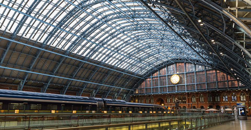 1868年に完成したロンドン屈指のターミナル駅。国際特急電車「ユーロスター」のロンドン側の発着駅でもあります。ゴシック様式の外観は荘厳な雰囲気ですが、内部はモダンな作り。構内にはポール・デイをはじめとする一流彫刻家の作品が並び、まるで美術館のよう。コンコースには「キャス・キッドソン」や「フォートナム&メイソン」、百貨店の「ジョン・ルイス」など、イギリス土産の購入にピッタリのお店が軒を連ねます。電車に乗らなくとも、買い物、食事、アートを丸一日たっぷり楽しめるスポットです。
