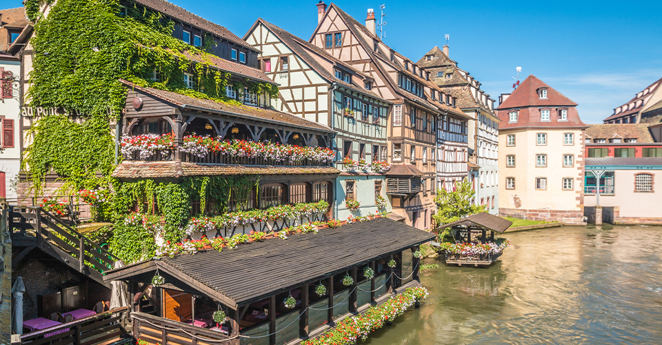 パリ東駅から電車で約2時間の場所にある「ストラスブール」は、可愛らしい木骨組みの家々が並ぶアルザス地方の古都です。見どころは、世界遺産に登録された旧市街「グランディル」。かつてフランスとドイツ間の領土争いによって何度も占領国が入れ替わった影響から、両国の文化が交じり合った独特な街並みが見られます。旧市街中心部には、ゴシック建築の代表格の「ストラスブール大聖堂」や、アルザス地方の伝統文化が学べる「アルザス博物館」等があり、童話のような街を眺めながら散策を楽しめます。